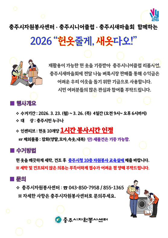 2026 "헌옷줄게,새옷다오!" 헌옷 재활용 봉사 안내